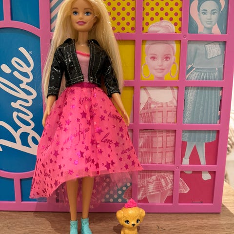 Leikitty, mutta edelleen hyvässä kunnossa oleva Barbie nukke ja lemmikkihoitola. Kaikki alkuperäisosat tallessa.