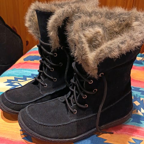 Myydään käyttämättömät mokkanahkaiset naisten talvisaappaat. Mukavat jalassa, lämmin vuori. Korot 3,5 cm. Koko 39.