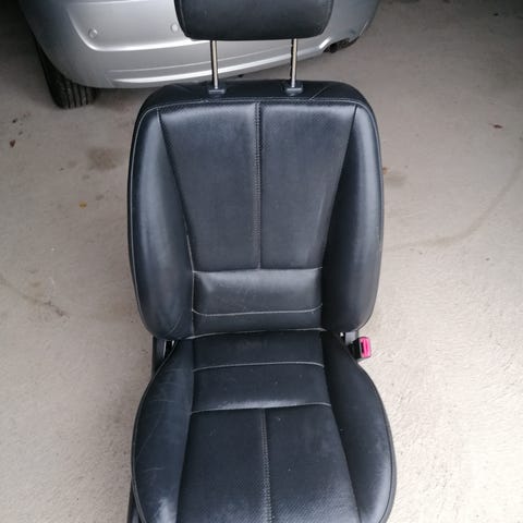 W163 ML vaaleat nahkaiset sähkösäätöiset etupenkit, vasen ja oikea. Ehjät mutta vaativat pesua.