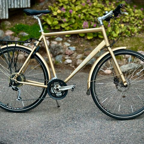 Polkupyörä on koottu, mutta sitä ei ole käytetty. Uusi, se on seissyt koko kesän suljetussa, lämmitetyssä varastossa. Kuitti on tallessa, pyörä on ostettu uutena.