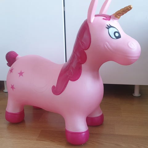Nappaa sametinpehmeän hevosen korvista kiinni ja pompi jännittäviin seikkailuihin. Pomppueläimessä on pehmeä kankainen pinta. Ilmatäytteisen hevosen 4 jalkaa pitävät sen tasapainossa ja lapsen on helppo pomppia paikasta toiseen. CE-merkki, 18 kk+