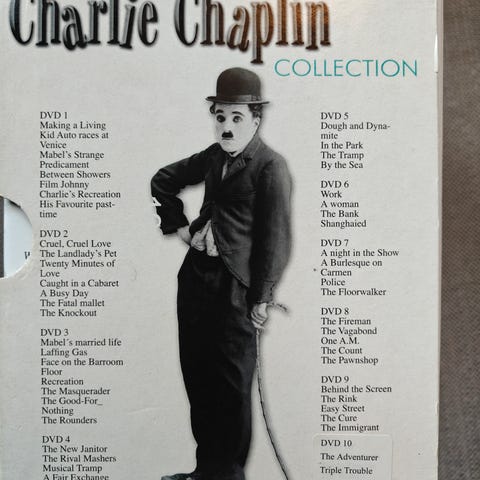 Charlie Chaplin Collection sisältää useita elokuvia, kuten The Kid, The Gold Rush, City Lights, Modern Times ja muita. Pakkaus sisältää useita levyjä, jotka esittelevät Chaplinin kuuluisimpia teoksia. Sopii elokuvaharrastajille ja klassisen elokuvan ystäville.