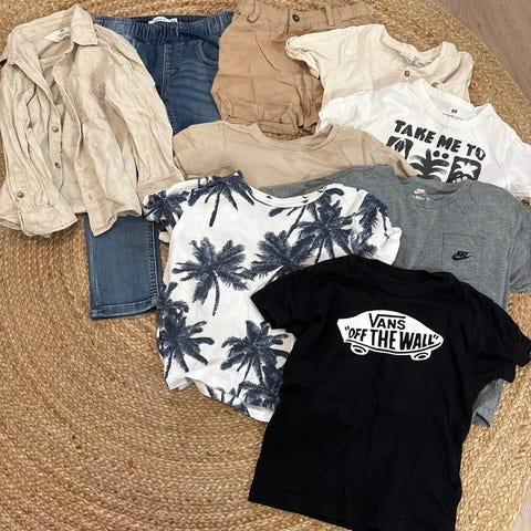 Vaatepaketti. Suurin osa on 98 mutta myös muutamia 92. Lisäksi uimahattu ja -shortsit. Lisäksi pari sukkaparia