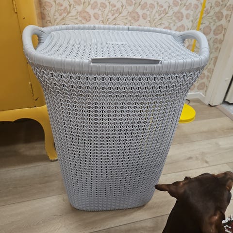 Metallinen tilava pyykkikori, pyörät alla, koko 62 x 45 cm, irroitettava ja pestävä puuvillainen pyykkipussi mukana. Kaikin puolin siisti.