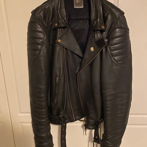 Nahkainen, muutaman kerran käytetty ajotakki.