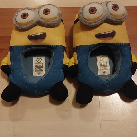 Minions lasten tossut, koko 31, unisex. Tossut ovat pehmeää materiaalia ja sopivat sisäkäyttöön. Tossujen pohjassa on liukuestepinta, joka lisää turvallisuutta käytössä.