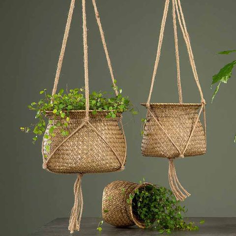 Rottinkinen/punottu amppeli 2 kpl. Korkeus n 20 cm, halkaisija 27 cm.