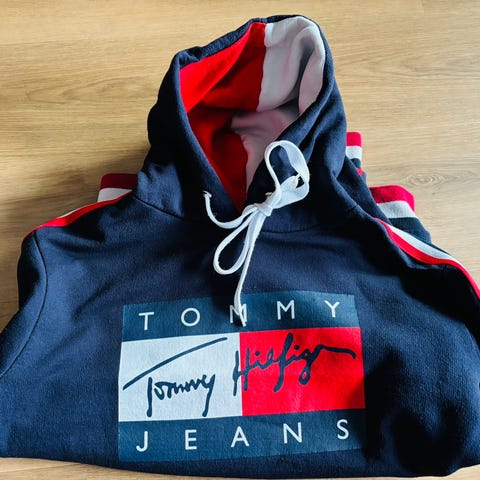 Myyntiin Tommy Jeansin perushuppari. Koko xs, ollut meillä käytössä 158 kokoisella nuorella. Kunto ok, käytetty, printissä pientä kulumaa. Nyt kuvatessa huomasin selän puolella pienen keltaisen tahran, ei ole tavallisessa pesussa lähtenyt. Koko xs / 158/164cm. Hinta 5€