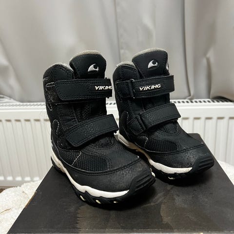 Viking lasten talvikengät, koko 28. Väri musta. Kengät ovat vedenpitävät ja sopivat sekä tytöille että pojille. Kengissä on tarrakiinnitys ja kumipohja, joka tarjoaa hyvän pidon.
