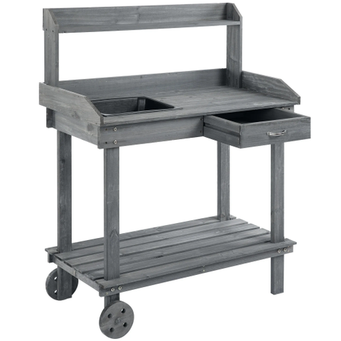 Outsunny Istutuspöytä Pyörillä 92 x 45 x 119 cm Kuusipuusta Natural