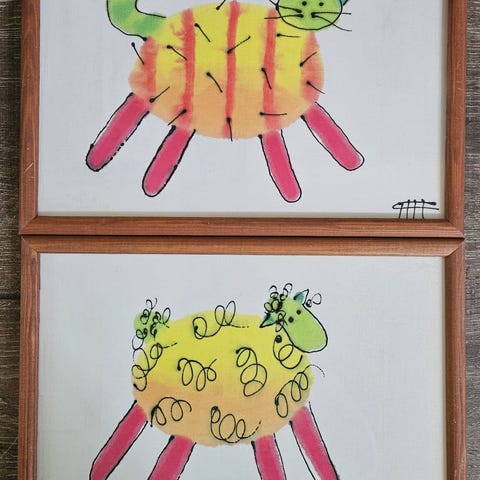 Neljä pientä taulua Disneyn hahmoilla. Koko 16,2 x 16,2. Yht hintaan.