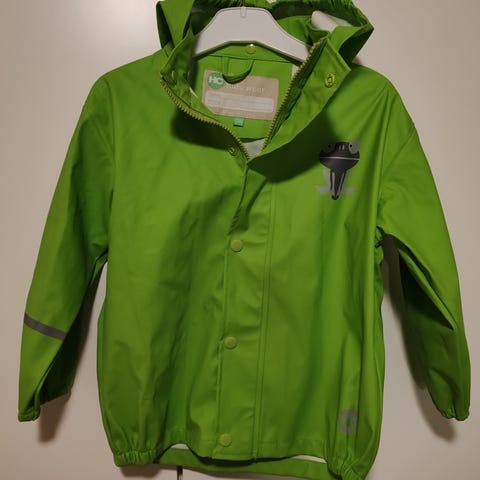 Nimikoitu, mutta vain kerran päällä ollut sadetakki. Nimikointia lukuunottamatta uutta vastaavassa kunnossa.