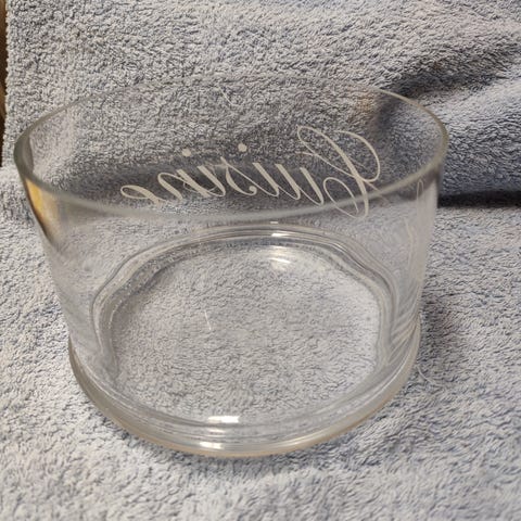Lasikulho kannella, jonka kyljessä lukee Cookies. Kuvassa talouspaperirulla on vieressä antamassa viitteitä kulhon koosta. Kävyt eivät kuulu tähän kauppaan.