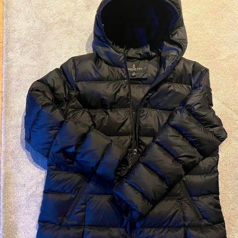 Yhden talven käytetty talvitakki. Irrotettava huppu, vuori teddyfleeceä, pujotuskuja helmassa koon säätämiseksi, sisätaskussa paikka johdolle, peukaloaukot, vesipilari 3 000 mm. Kainalo-kainalomitta 65cm, olka-helma 78cm takaa mitattuna.