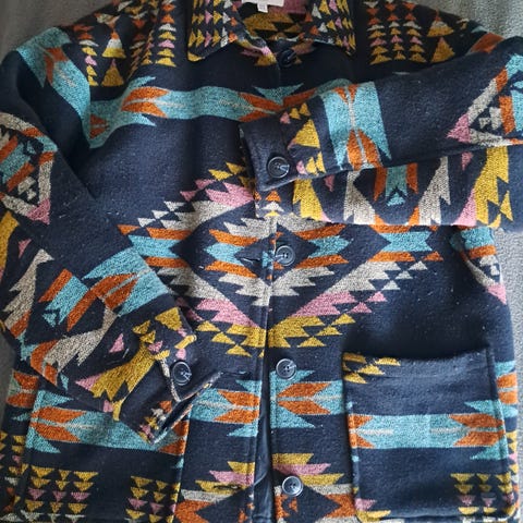 Umbron paksu urheilutakki, koko L. Paksua puuvillaa, vetoketjutaskut, kiristys nyörit alaosassa.