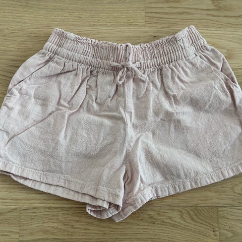 Myydään shortsit. H&M. Kokomerkintä EUR 98, US 2-3 Y. Vyötäröllä säätömahdollisuus. Taskut. Vetoketju ja nappi. Napinläpi reunuksessa pieni virhe (katso kuva), mutta käyttökelpoiset shortsit joissa nättiä säihkettä kankaassa!