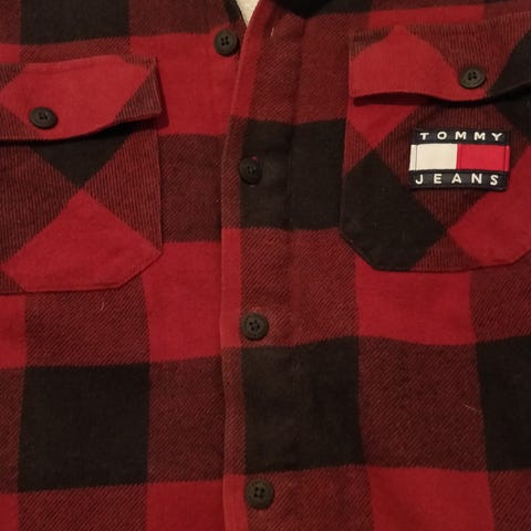Moitteettomassa kunnossa oleva Tommy-farkkutakki, istuu tiukasti. Miesten / unisex