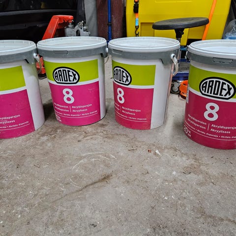 Kuvan mukainen 2-komponenttinen betonin injektointiin tarkoitettu sarja. Enimmät jäljellä kuten kuvasta näkyy (pullot ovat uutena ehkä puoleen väliin.