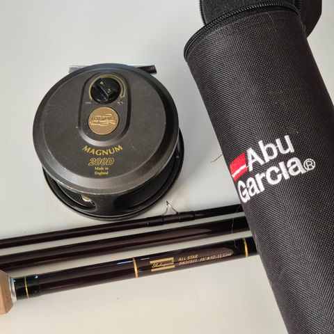 Tästä jollekkin alkavalle lohen kalastajalle tai jo kokeneemmalle kalaa ja tapsia vaille valmis setti kalastukseen. Ollut itsellä pari reissua mukana mutta sen jälkeen innostus hiipunut hommaan. Setissä tosiaan snowbee prestige(diamond) vapa, snowbee geo kela, uppo- ja pintasiima, erilaisia kärkiä ja koukku- sekä putkiperhoja mukavasti että pääsee heti heittämään. Vapa muistaakseni aikalailla koko-/ puolitoiminen