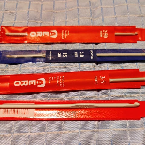 Hinta yksitellen 5e/kpl tai kolmen virkkuukoukun settinä kaikki 10e.