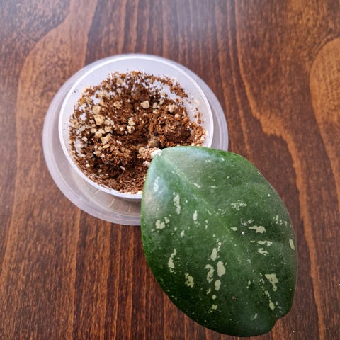 Kaunis laikkulehtinen posliinikukka. Pistokkaissa 2-3 lehteä. Hyvin juuria tehneet pistokkaat on istutettu leca-perliitti-kookos-seokseen 12.10.