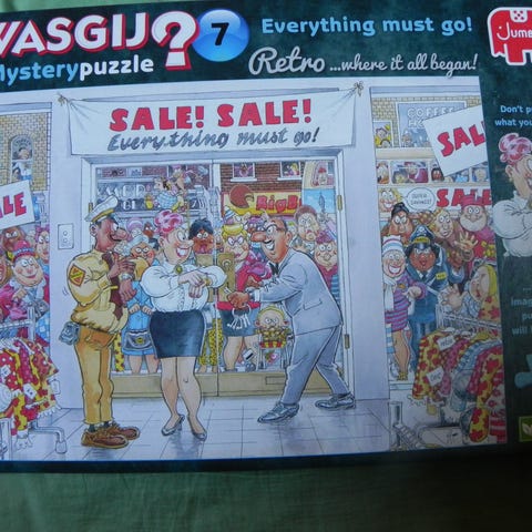 Uudenveroinen kerran koottu Wasgij Mystery palapeli Everything must go!