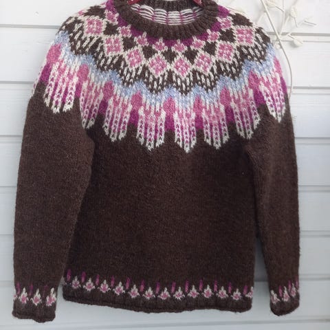 Myydään uusi islantilaisneule. Lanka aitoa islantilaista villalankaa nimeltään lettlopi. Malli nimeltään Riddari, värien toteutus oma suunnitelma. Niskaa koroitettu jotta istuu paremmin, näkyy yhdestä kuvasta. Työjälki siistiä ja mittasuhteet oikeat. Koko S. Kainalo-kainalo 47 cm. Hihan mitta kainalosta hihansuuhun 47 cm. Koko mitta 62 cm.