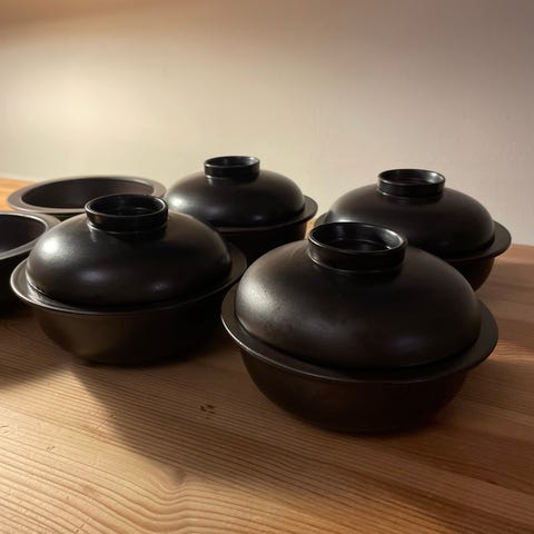Arabian ruskeita Liekki -sarjan astioita, uuninkestävät, konepesun kestävät (suunnittelija Ulla Procope):