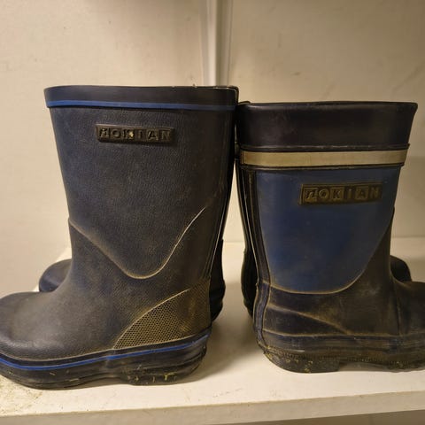 Vaaleanpunaiset talvikumisaappaat, koko 20. Koko on isompi, vastaa mielestäni 21-22 kokoa. Sisämitta 12,5 cm.