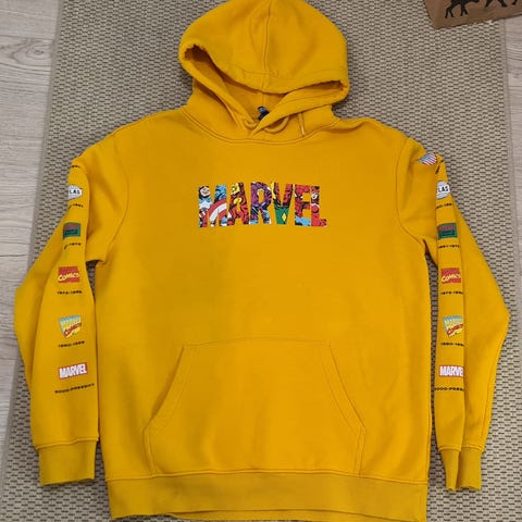 Aito Marvel-huppari. Aikuisten koko XS, joka vastaa ehkä lasten kokoa 160 cm.