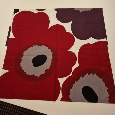 Myydään kaunis marimekko laippareunainen sisustustyynyliina. Jäänyt kaappiin. Vain nouto Ritaharjusta.