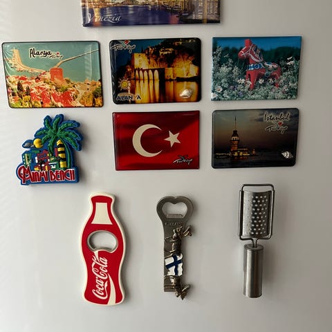 Myydään yhdessä jääkaappimagneetit. Yksi magneeteista sopii kirjanmerkiksi.