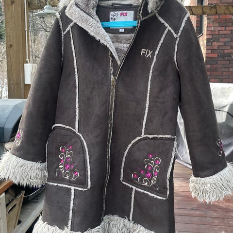 Myydään tyttöjen talvitakki Koko 134cm, takki on ehjä mutta haaleita tarhoja löytyy.(Huomioitu hinnassa)