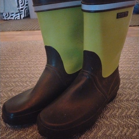 Hyväkuntoiset ja ryhdikkäät punaiset kumisaappaat