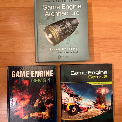Jason Gregory Game Engine Architecture kirja, Second Edition. Kirja käsittelee pelimoottorien arkkitehtuuria ja suunnittelua. Soveltuu pelinkehityksen opiskeluun ja ammatilliseen käyttöön.