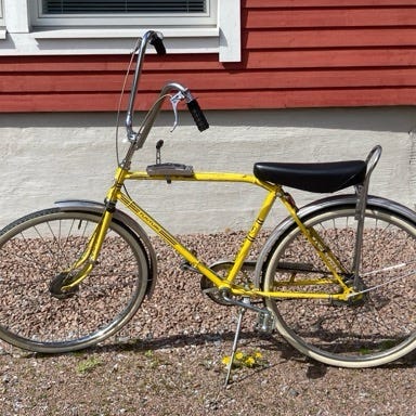 chopperpyörä, ajeltu kylillä. Nyt edukkaasti seuraavalle rassaajalle