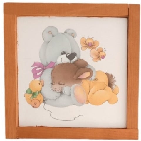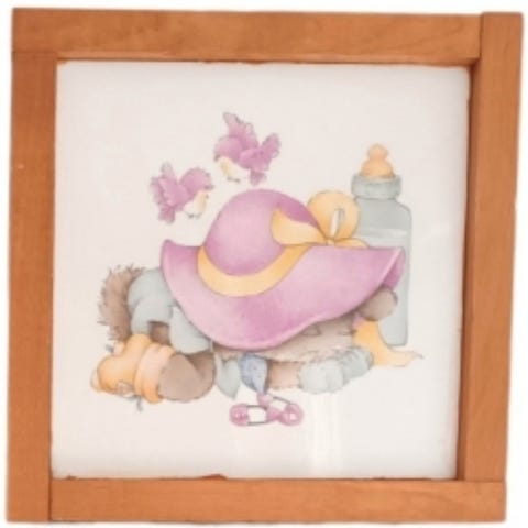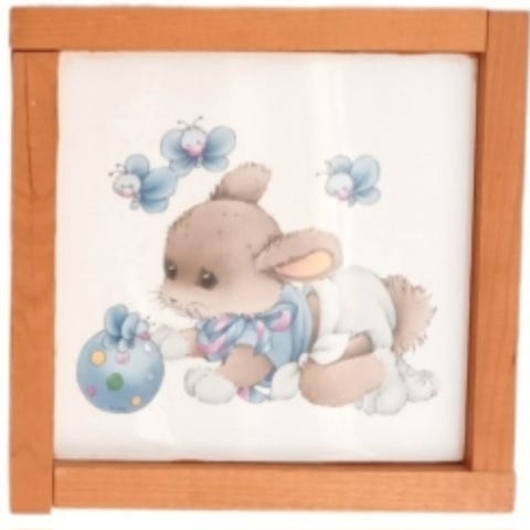 Myydään käsityönä valmistettu seinätaulu lastenhuoneeseen. Löytyy 4 kappaletta erikuva / pupu aiheisia. Taulun mitat ovat 18,5cm x 18,5cm.