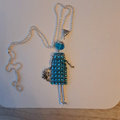 Kaulakoru, jossa on pyöreä riipus, jossa on puu missä pieniä kiviä+korvakorut. Ketju ja korvakorut on metallinen ja väriltään kullanhohtoinen.