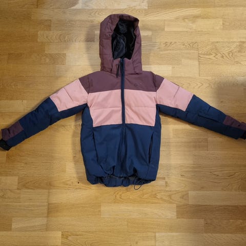 Tummansininen Ticketin tuulitakki. Hyvässä kunnossa, mutta pieniä käytön jälkiä havaittavissa lähinnä hihansuissa ja joitakin haaleita jälkiä, joita en ole yrittänyt erikseen poistaa (ks. kuvat). Eivät juurikaan erotu käytössä.