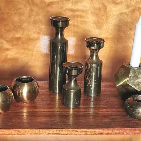 1. MYYTY Upea kynttilänjalka seinälle tai pöydälle. Takana liu'utettava heijastuslevy.