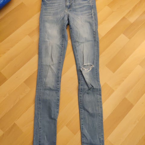 Kerran käytetyt farkut, hieman levenevät lahkeet