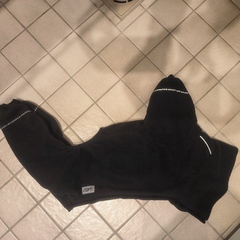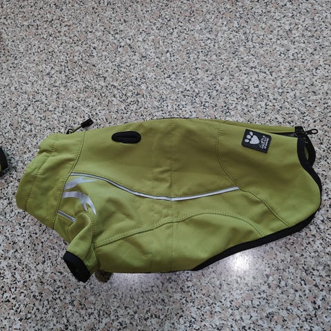 Tämä on uusi, käyttöönotto pesty. Oli ihan liian isot lahkeet omalle koiralle.