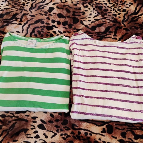 Hyvä kunto. Paidan vasemmassa hihassa, brooderauksen vieressä ihan pieni reikä ja paidan etupuolella läheltä katsottuna vähän haaleaa tahraa.