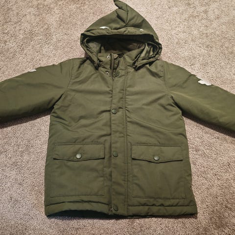 Hyvässä kunnossa oleva hirviö aihinen musta teddy takki 122cm