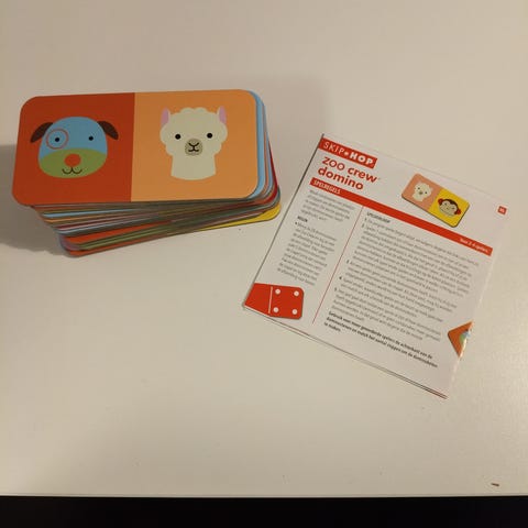 Erinomaisessa kunnossa oleva puinen domino-peli. Toisella puolella kuvat, toisella lukumääriä, joten sopii ihan pienestä vähän isommillekin lapsille. Puinen säilytysrasia ja käyttöohjeet mukaan. Jäi vähäiselle käytölle, ei käytön jälkiä. Sopii siis vaikka lahjaksi!
