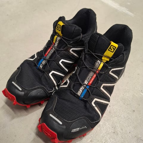 Salomon Spikecross juoksukengät, koko 36 2/3. Kengät ovat punaisen ja mustan väriset ja suunniteltu erityisesti juoksuun ja kävelyyn. Kengissä on nastapohja, joka tarjoaa hyvän pidon erilaisilla alustoilla. Hinta 60€. Postikulut ostajalle.