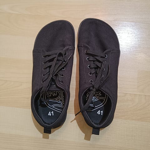 Kerran ulkona käytetyt Vaistoa Rento paljasjalkakengät. Mustat.