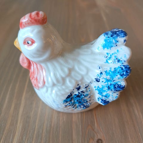 Hyväkuntoinen muovinen sirotin, korkeus 7,5 cm ja halkaisija 5 cm.