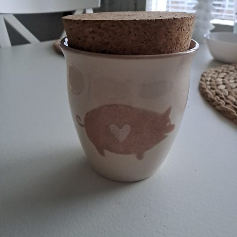Myyntipakkaukseen jäänyt vihreä te/kahvikuppi lautasella.