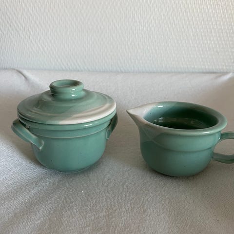 Siisti ja hyväkuntoinen vanha vihreä kermakko ja sokerikko yhteensä 35e